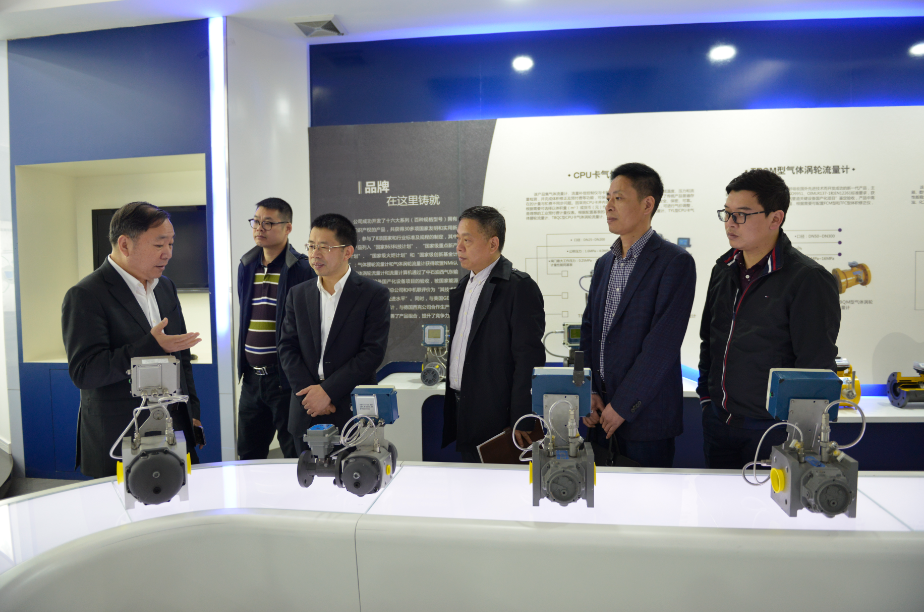 蔣部長一行在范叔沙總裁的帶隊(duì)下,實(shí)地參觀了公司展廳、生產(chǎn)車間,詳細(xì)地了解了企業(yè)產(chǎn)品研發(fā)、市場前景以及企業(yè)發(fā)展面臨的問題。在座談交流中,范總表達(dá)了自己對(duì)企業(yè)的深厚感情,在40年的儀器儀表行業(yè)工作中,從無到有,從有到優(yōu),從優(yōu)到精,逐步將天信做到了燃?xì)鈨x表行業(yè)的龍頭企業(yè),也表達(dá)了自己熱愛蒼南這片土地、熱愛這個(gè)行業(yè)。隨后,范總介紹了在國家能源局下發(fā)關(guān)于積極推進(jìn)天然氣高效利用的政策下,全國各地嚴(yán)重的霧霾天氣影響下,為天信儀表發(fā)展帶來契機(jī)。天信發(fā)展到今天,離不開先進(jìn)的設(shè)備、技術(shù)的創(chuàng)新,和優(yōu)秀的管理團(tuán)隊(duì)。但是在發(fā)展過程中,也存在一些問題,創(chuàng)建之初單槍匹馬的傳統(tǒng)發(fā)展模式,區(qū)域發(fā)展劣勢(shì)及人才匱乏嚴(yán)重制約了天信的發(fā)展。在2016年,天信整合各方面力量,積極尋找合作伙伴,與金卡智能集團(tuán)股份有限公司強(qiáng)強(qiáng)聯(lián)合,擴(kuò)大儀表行業(yè)的領(lǐng)頭羊地位。