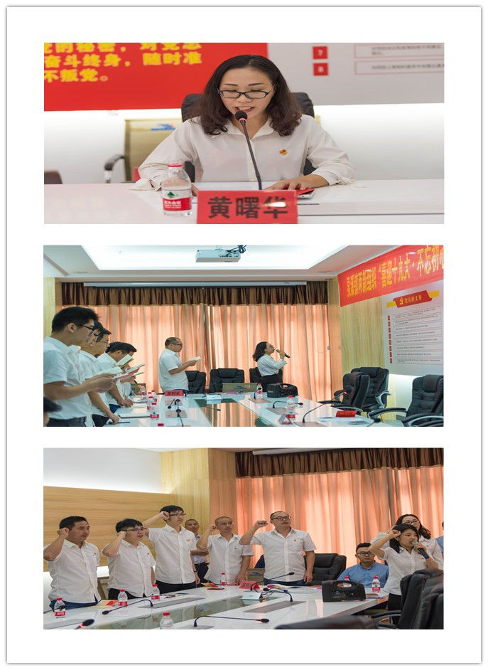 在集體觀看警示教育片、學(xué)習(xí)有關(guān)文件精神后,天信的8位黨員、入黨積極分子在黨委書記黃曙華的帶領(lǐng)下,有序按照蒼南縣主題黨日+N模式作示范教學(xué)。佩戴黨徽持黨員一本通簽到,通過支付寶或微信紅包現(xiàn)場繳納10月份黨費、重溫入黨誓詞、集體誦讀黨員的義務(wù),在喜迎十九大、說說心里話主題討論交流環(huán)節(jié)中,大家袒露心聲,發(fā)言踴躍,有表達對國家、對黨、對企業(yè)熱愛的,有回顧總結(jié)反思自己學(xué)習(xí)工作的,有對上級和公司黨組織提出希望和要求的,預(yù)備黨員鄒邦福說,能在十九大召開之前,光榮加入中國共產(chǎn)黨,他感到無比驕傲和自豪!隨后,黨委書記黃曙華對大家的發(fā)言給予了點評,她充分地肯定了天信黨員在日常工作中的付出和努力,同時希望大家繼續(xù)立足崗位、發(fā)揮先鋒模范作用,以優(yōu)異的成績向黨的十九大獻禮!