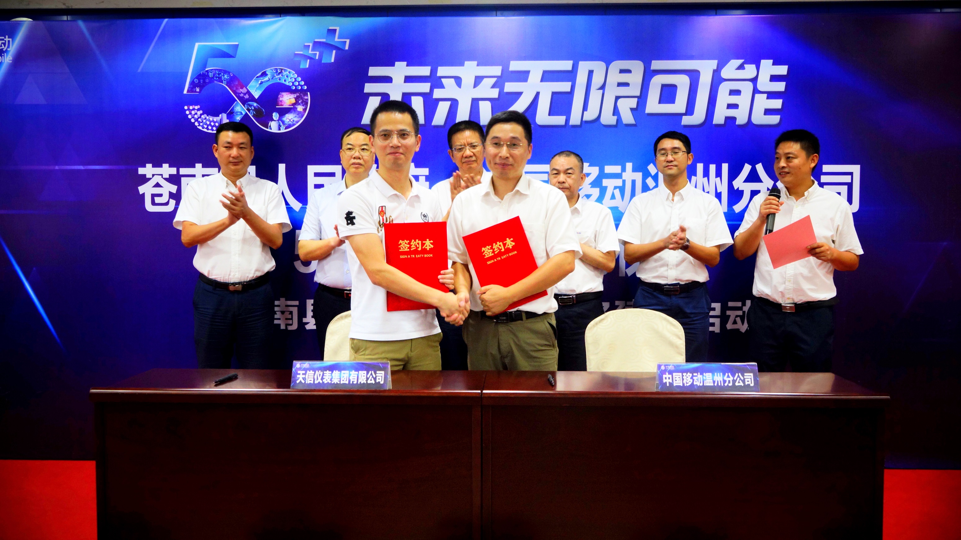9月12日,在蒼南移動大樓舉行了蒼南縣人民政府與中國移動溫州分公司5G戰(zhàn)略協(xié)議簽訂儀式暨蒼南縣首批5G企業(yè)網(wǎng)絡(luò)建設(shè)啟動會。蒼南縣副縣長李上清、中國移動溫州分公司總經(jīng)理助理葉朝陽、天信儀表集團(tuán)有限公司副總裁李孝評等單位領(lǐng)導(dǎo)參加了簽約儀式。